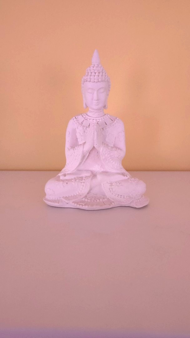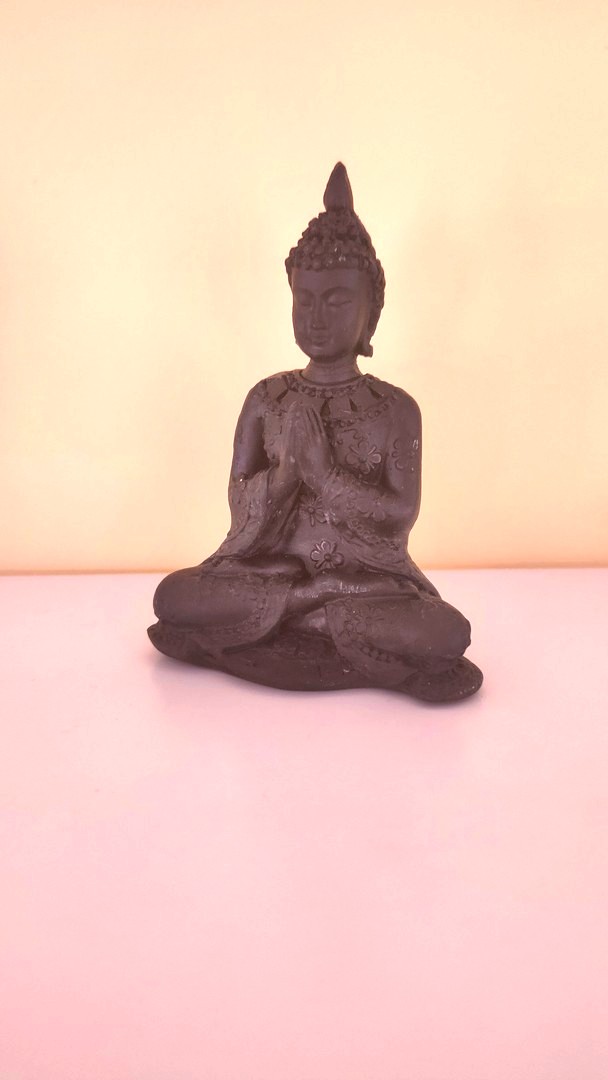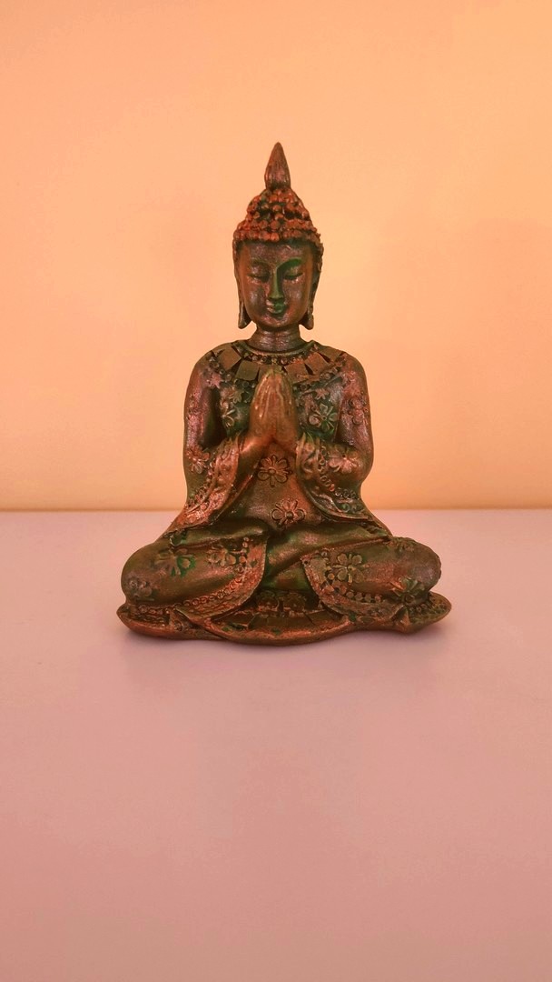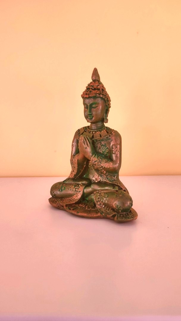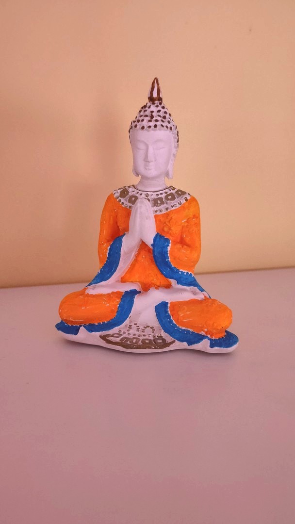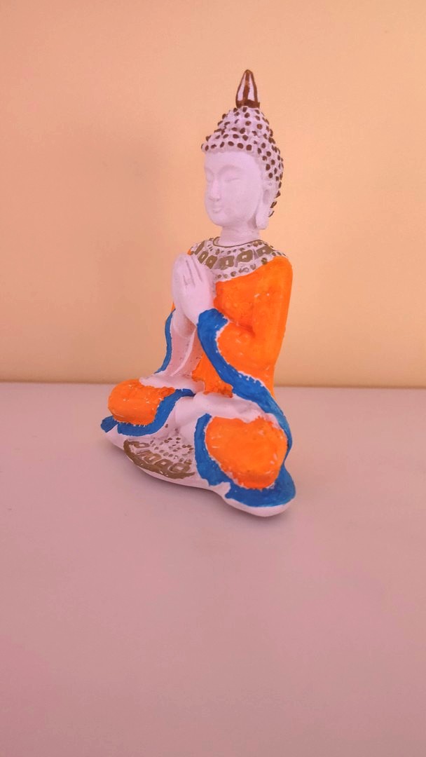 - Este o statuetă care îl reprezintă pe Buddha în postură de meditație salutând.