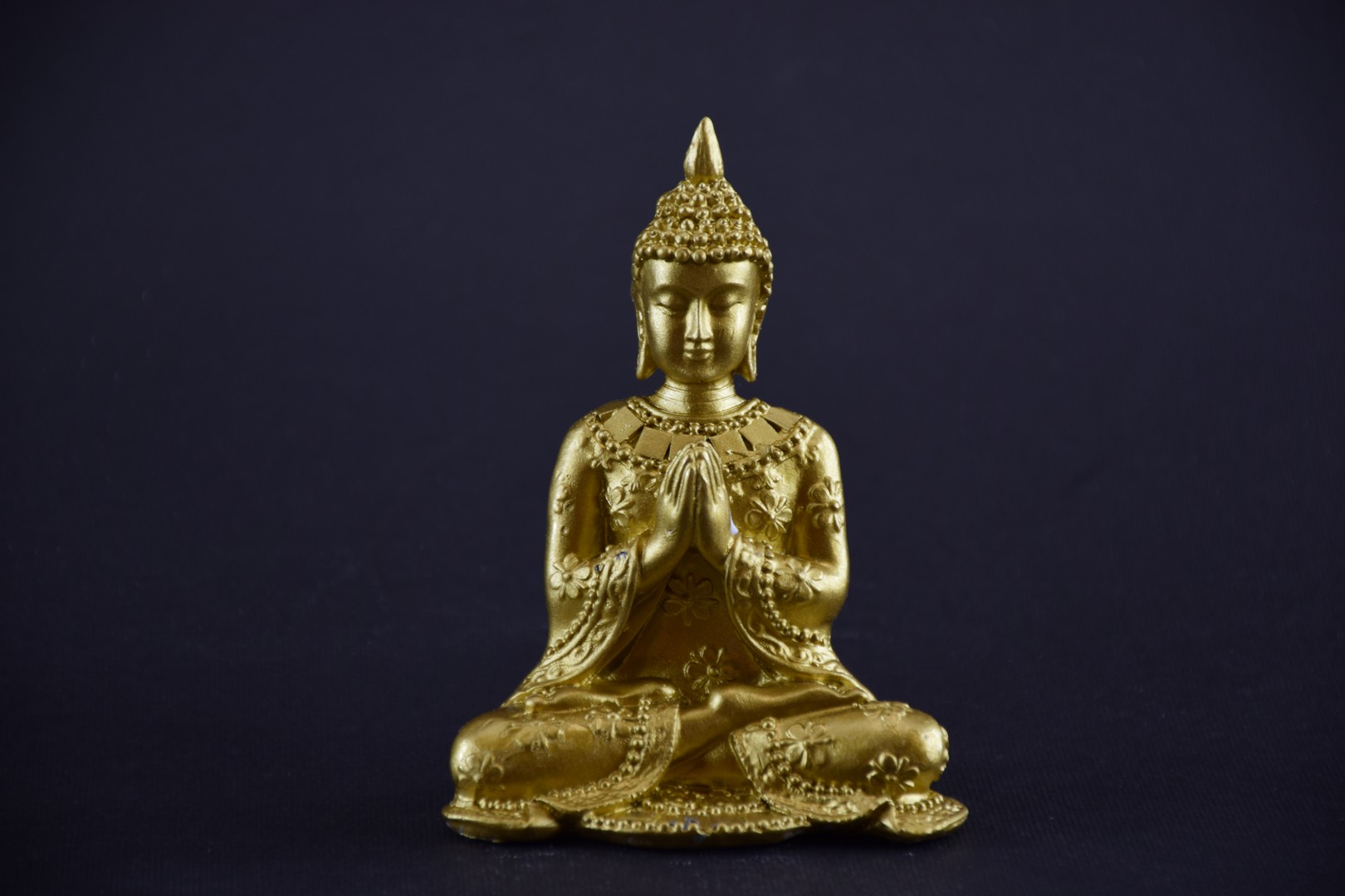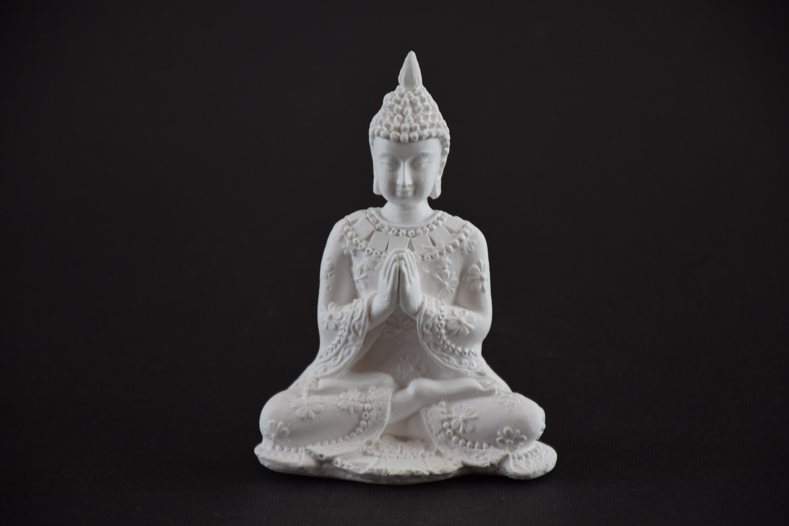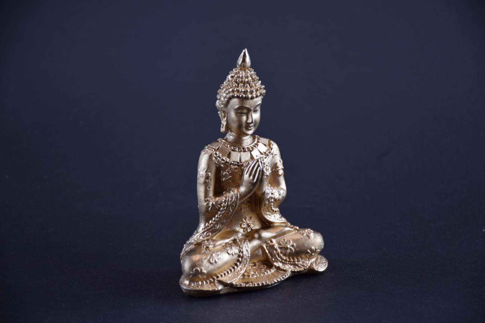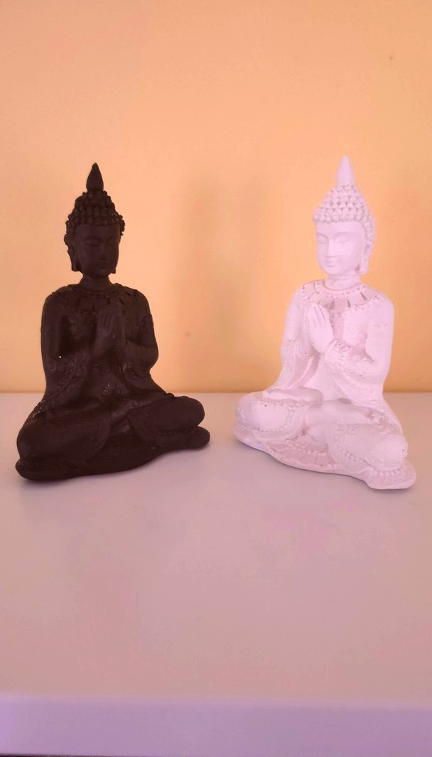 - Este o statuetă care îl reprezintă pe Buddha în postură de meditație salutând.