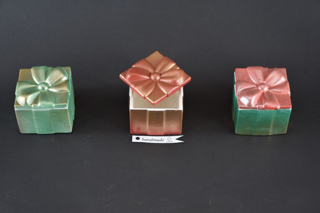 - Este o cutie cu capac turnată manual din ceramică fină.