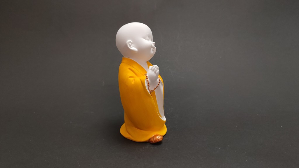 - Această figurină poate fi plasată în locul consacrat meditației sau oriunde și ne aduce aminte de candoarea și aspirația copiilor care vor să ajungă la fel de înțelepți precum învățătorii lor spirituali.