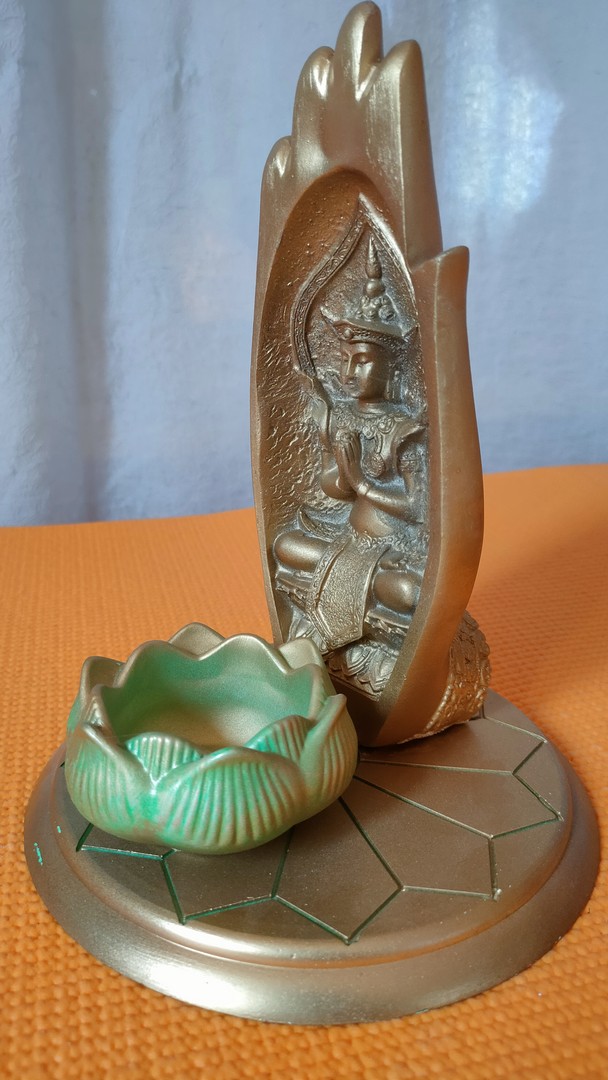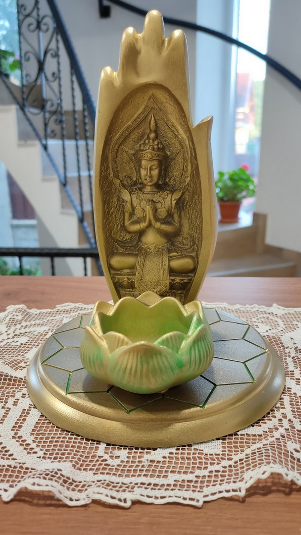 - Plasată în interior, în locul consacrat pentru meditație și rugăciune, i se poate asocia un suport pentru lumânare și astfel se poate crea o ambianță inspiratoare de pace și armonie.