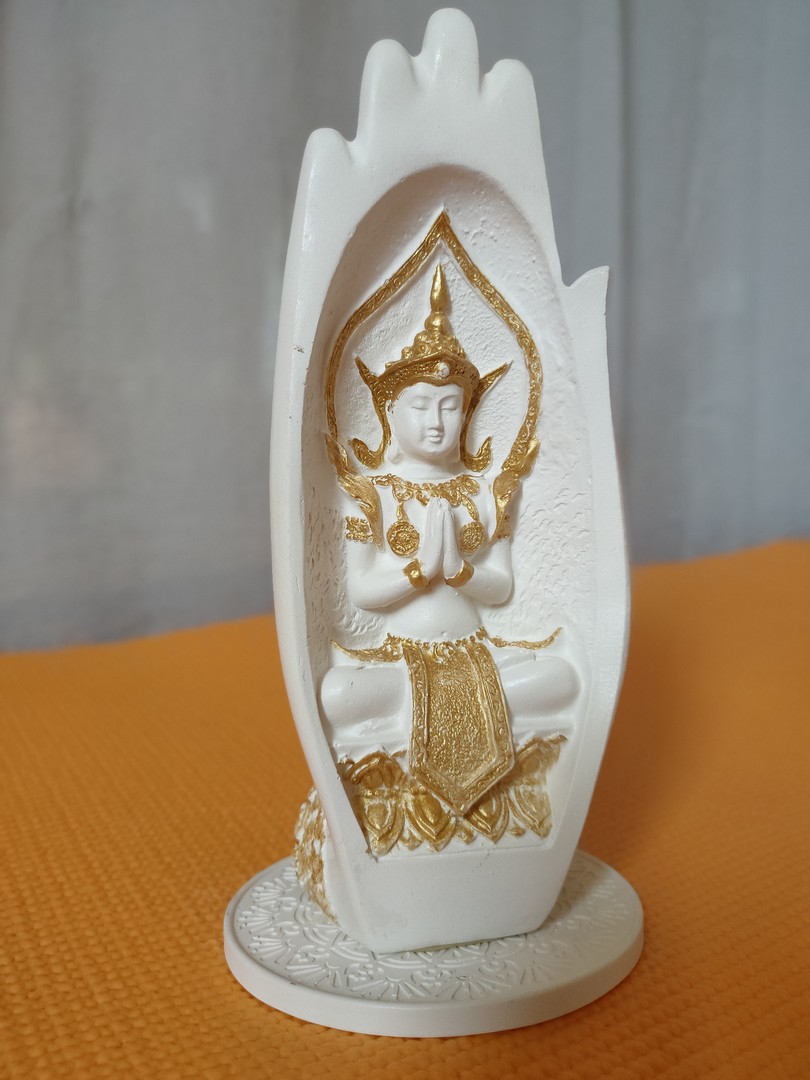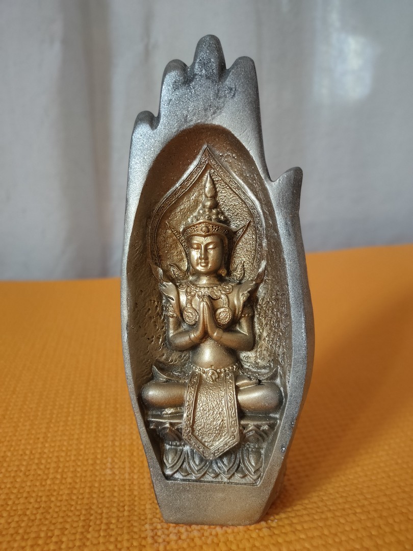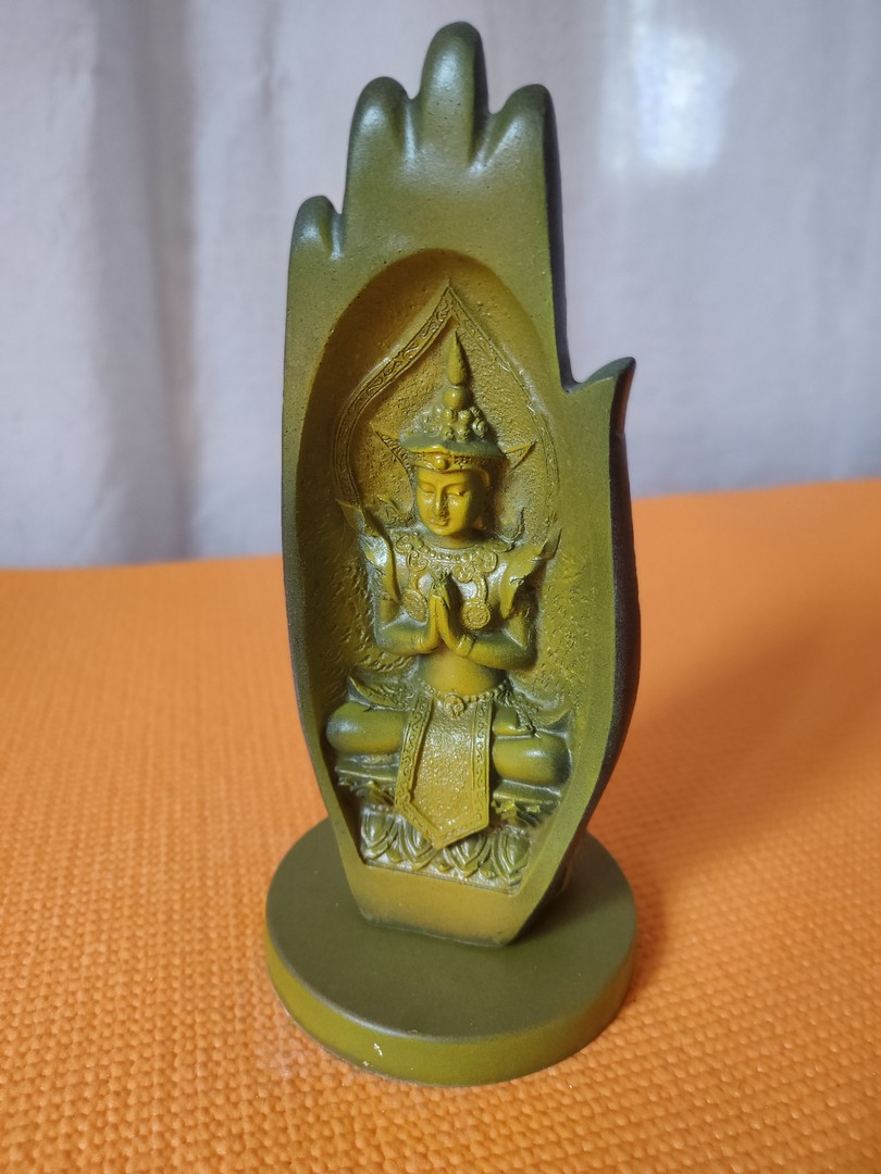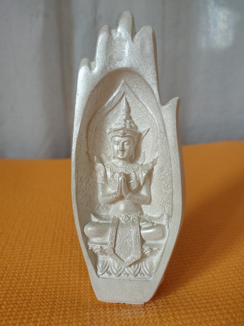 - În cele 2 palme sunt sculptate două reprezentări tradiționale ale lui Buddha: cel de întâmpinare și salut iar celălalt de îndepărtare a fricii.
