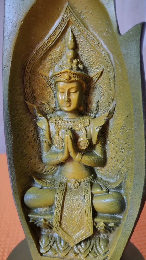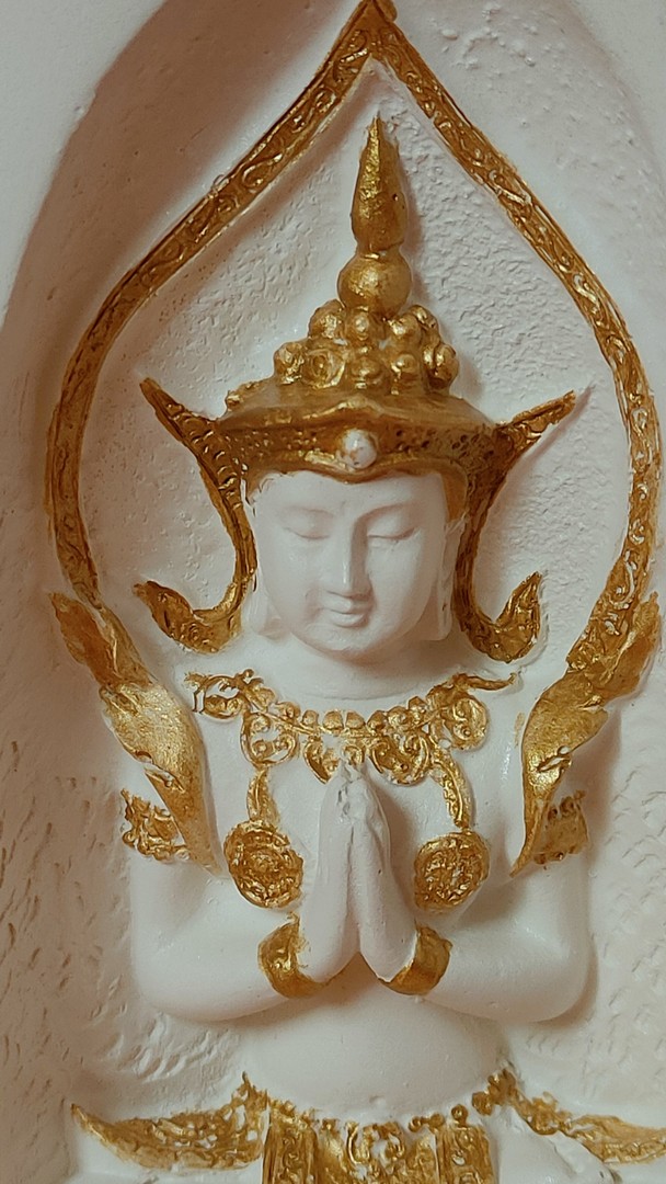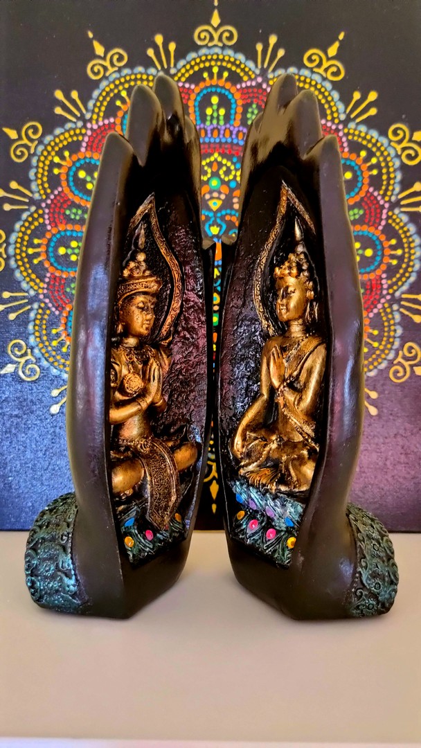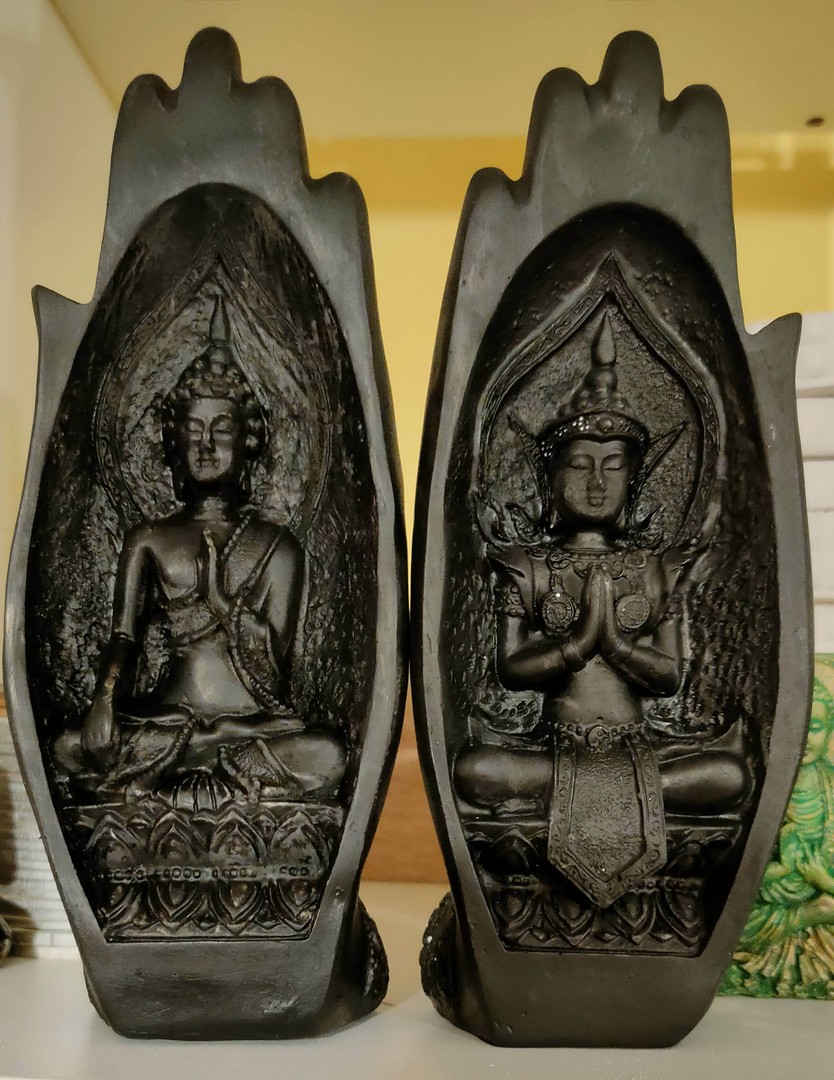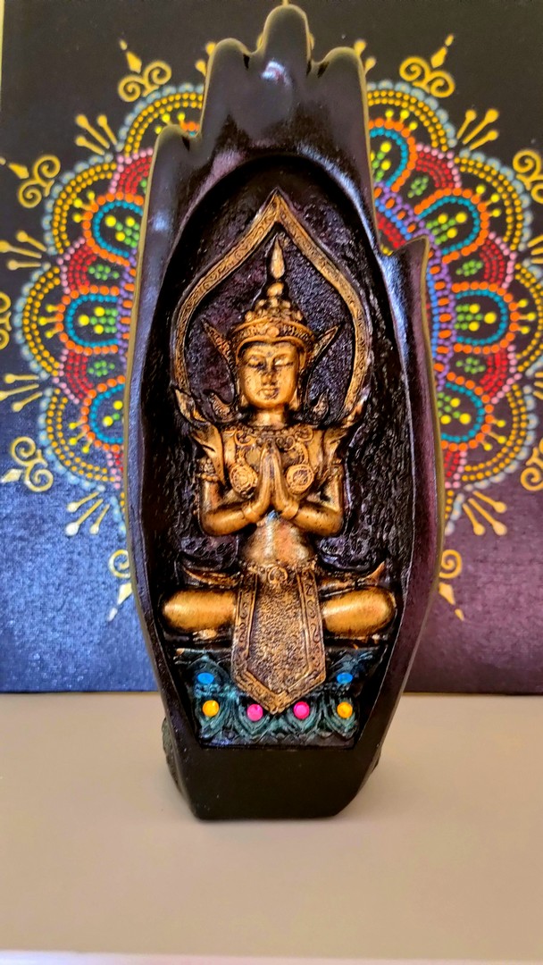 - În cele 2 palme sunt sculptate două reprezentări tradiționale ale lui Buddha: cel de întâmpinare și salut iar celălalt de îndepărtare a fricii.