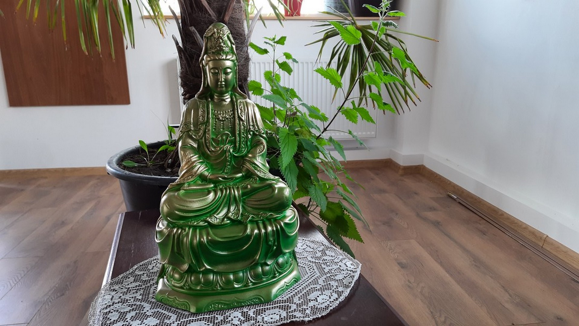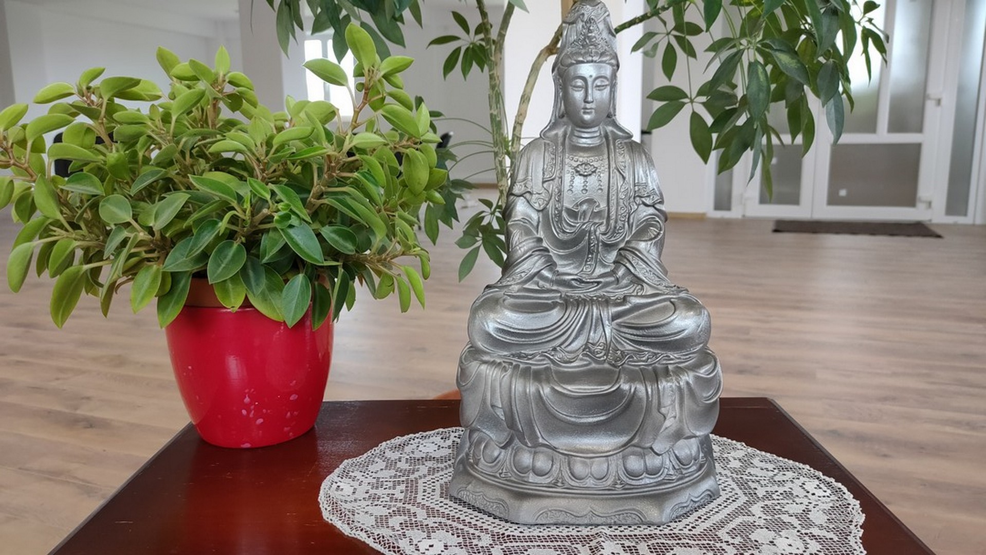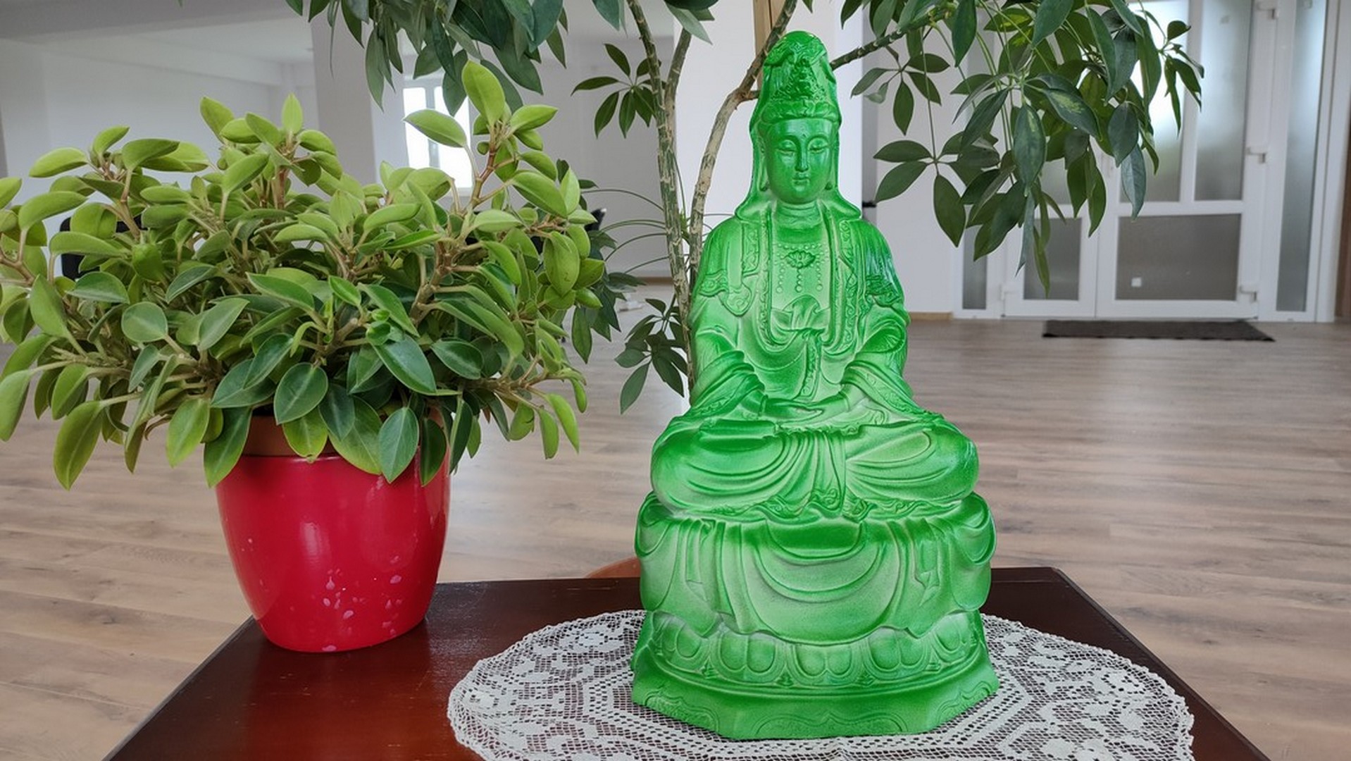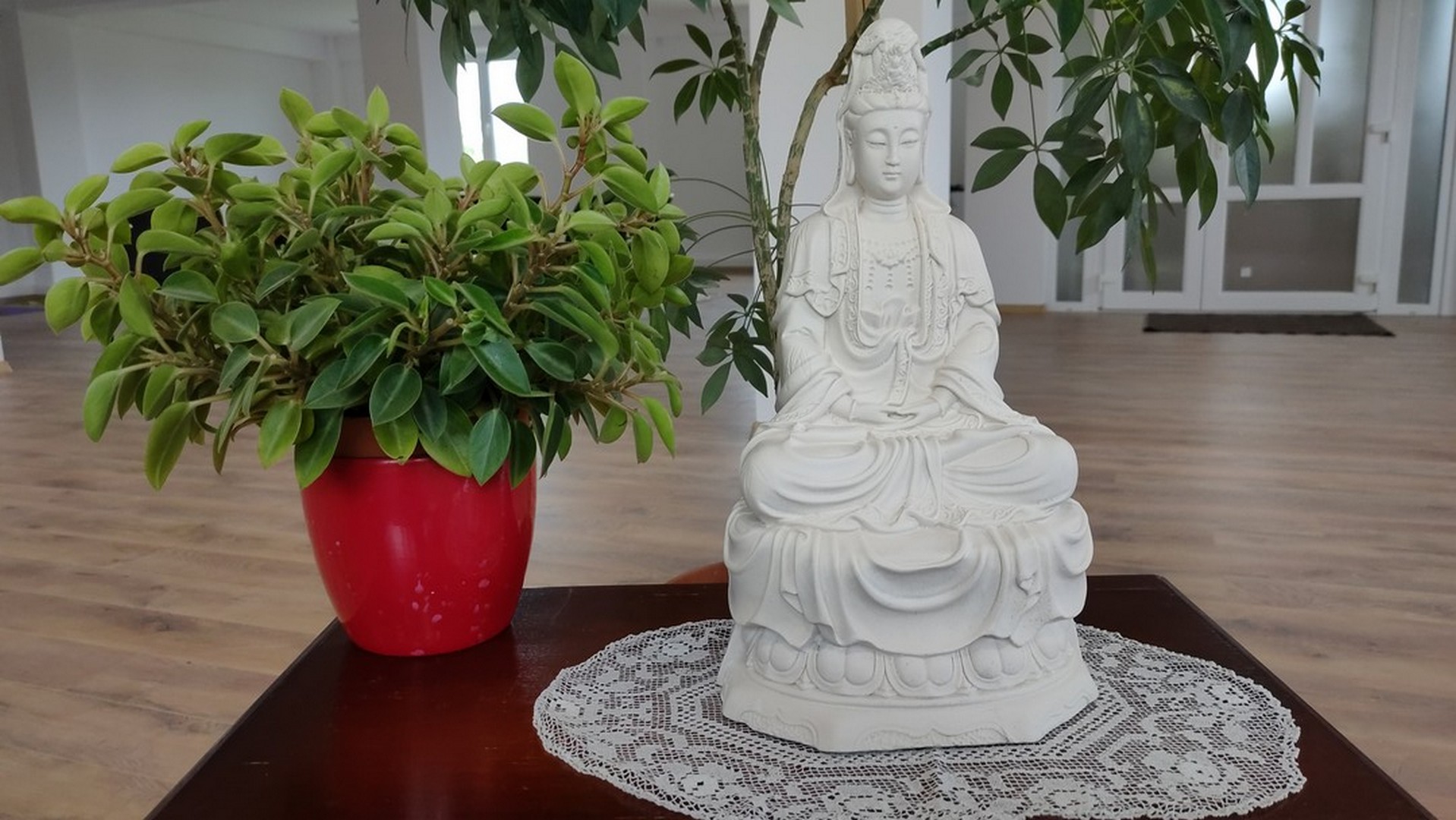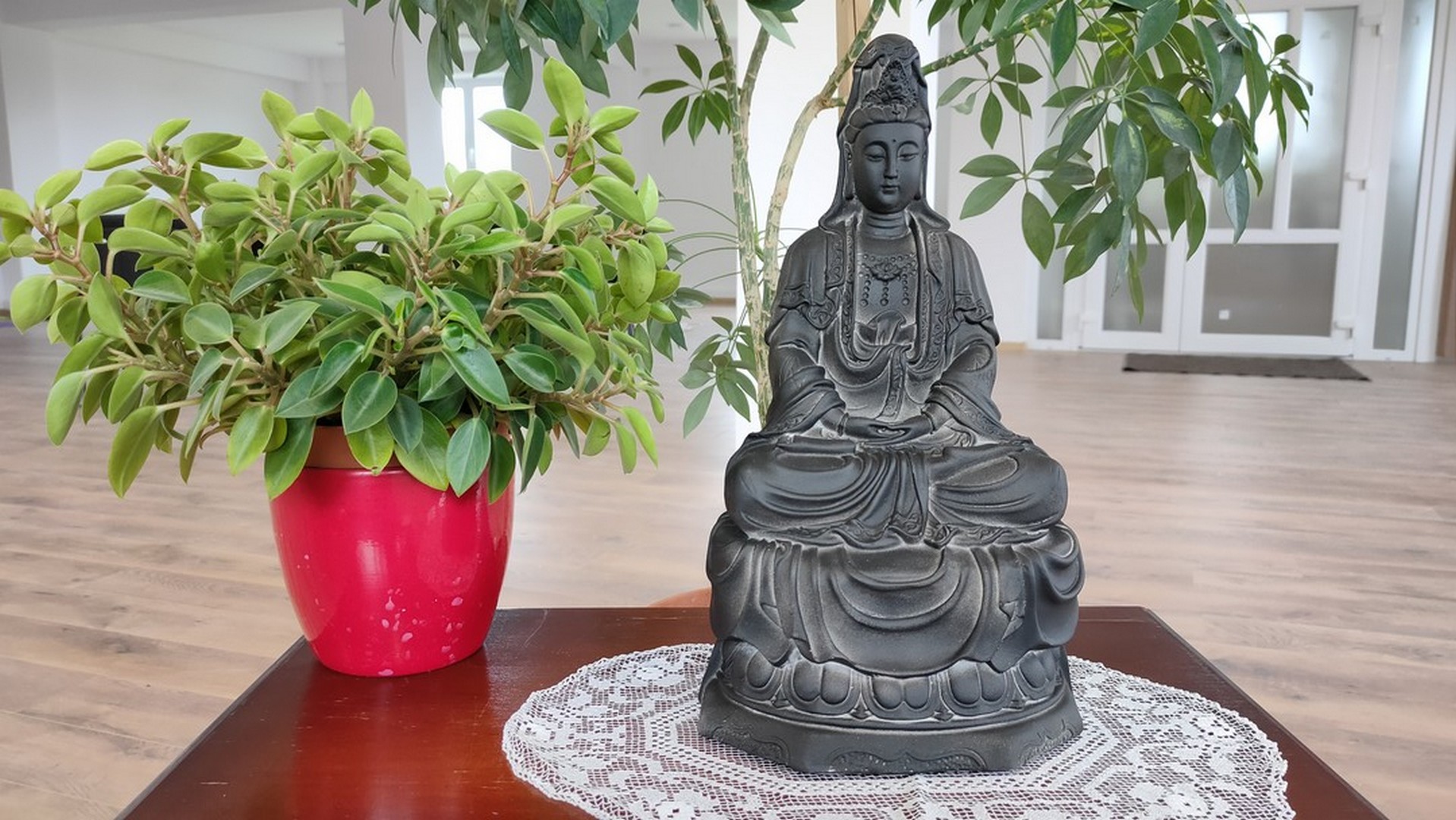 - Plasat în interior, pe terasă sau în grădină, contemplarea acestei statui inspiră serenitate, bunăvoință și bunătate, inducen o stare de calm și meditație. Poate fi plasat în sălile de yoga și meditație.