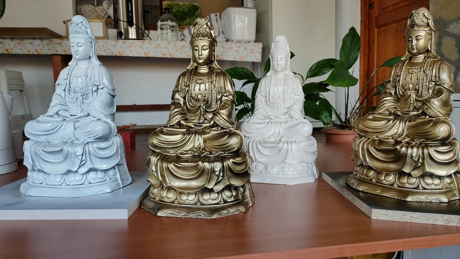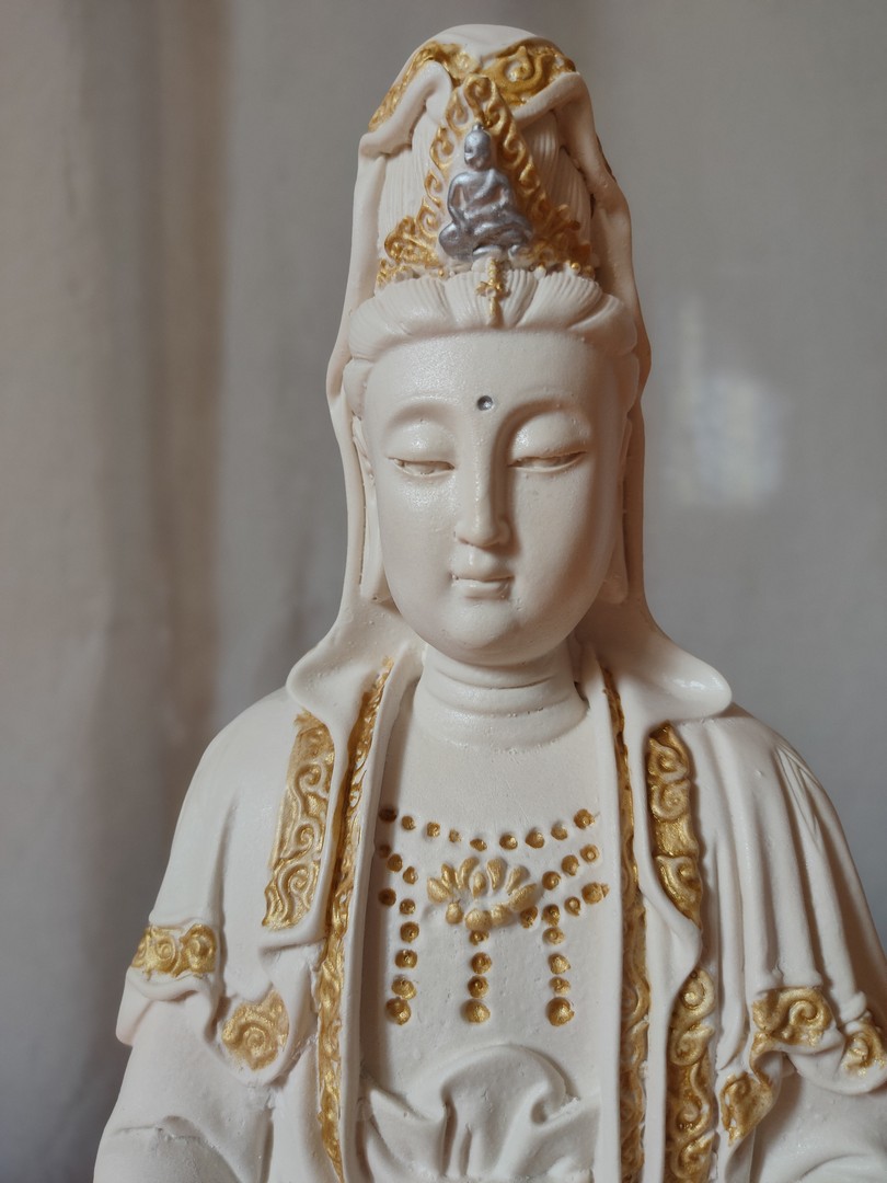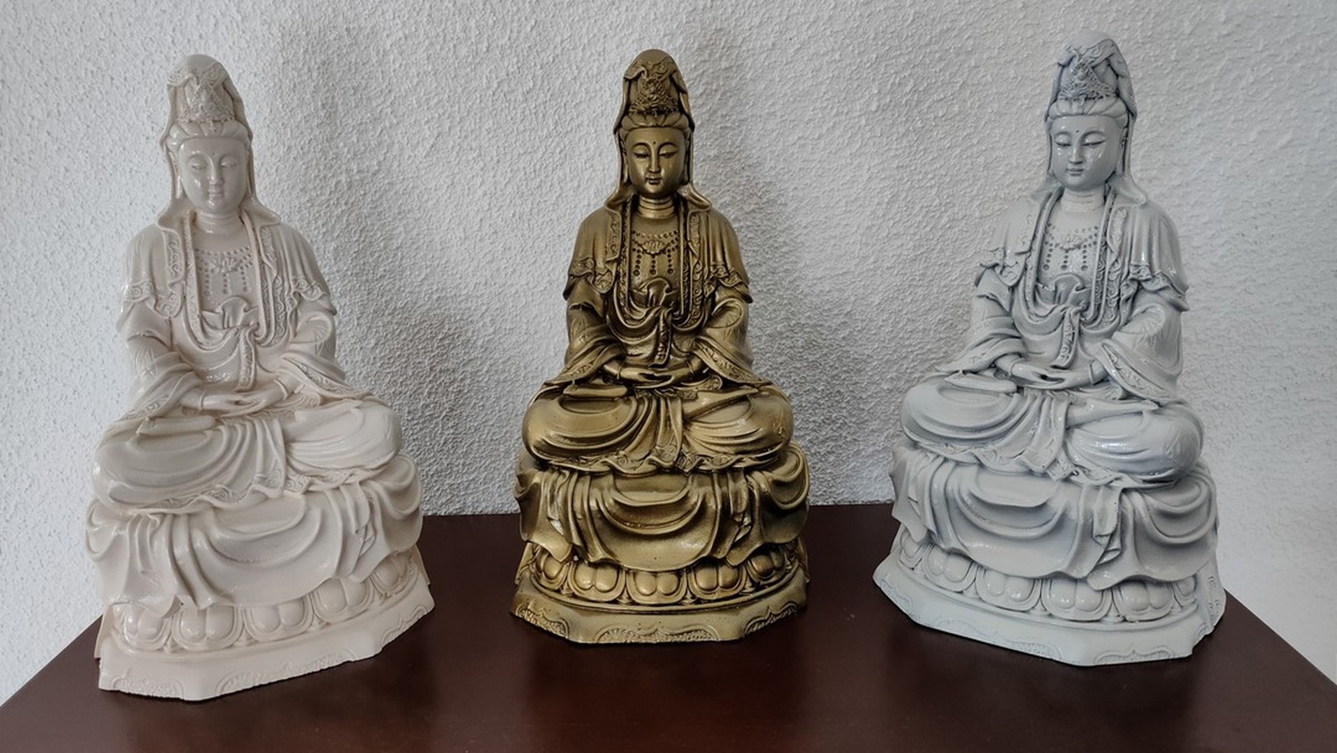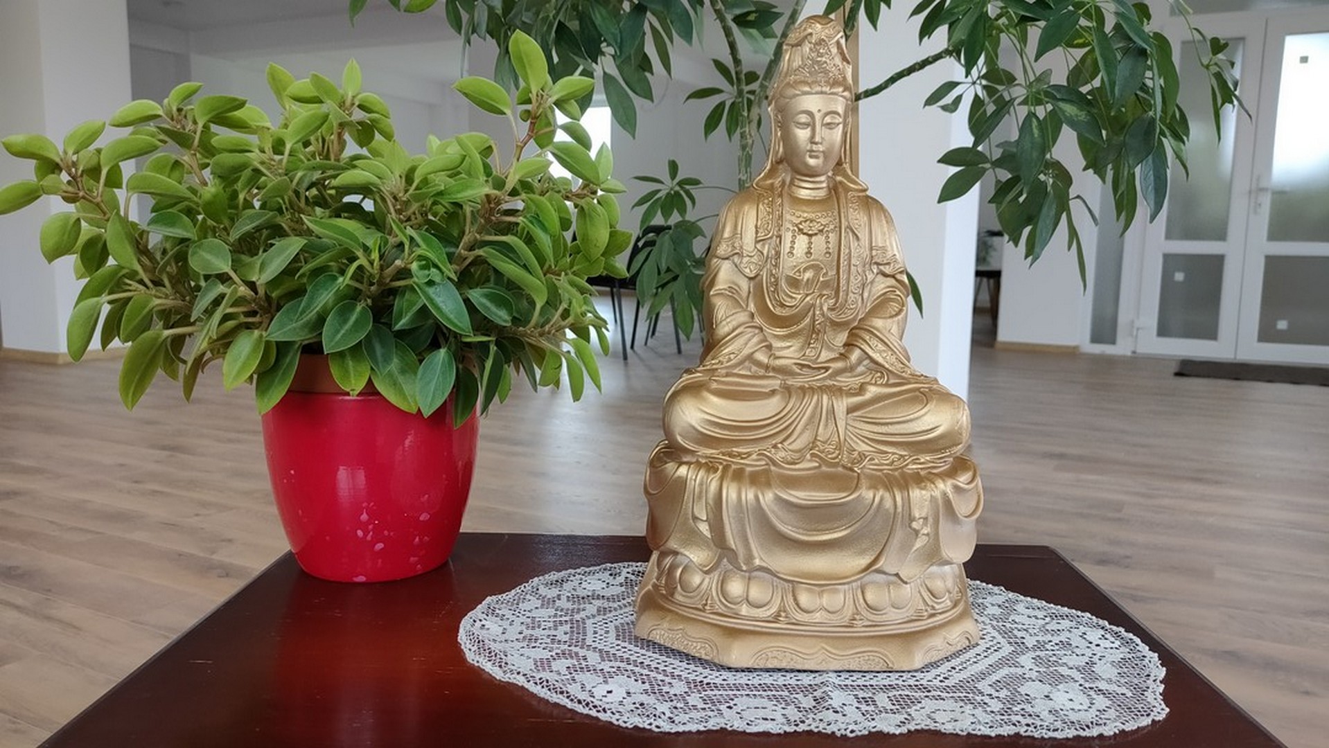 - Statuie reprezentativă a tradiției budiste tibetane. Este cunoscută și sub numele de Guan Yin sau Tara. Reprezintă aspectul divin al compasiunii. Postura de meditație este Padmasana (Postura Lotusului) și degetele de la mâini sunt ținute în Dhyana Mudra (dhyana = meditație, mudra = gest, atitudine).