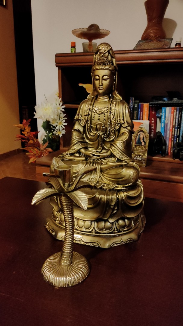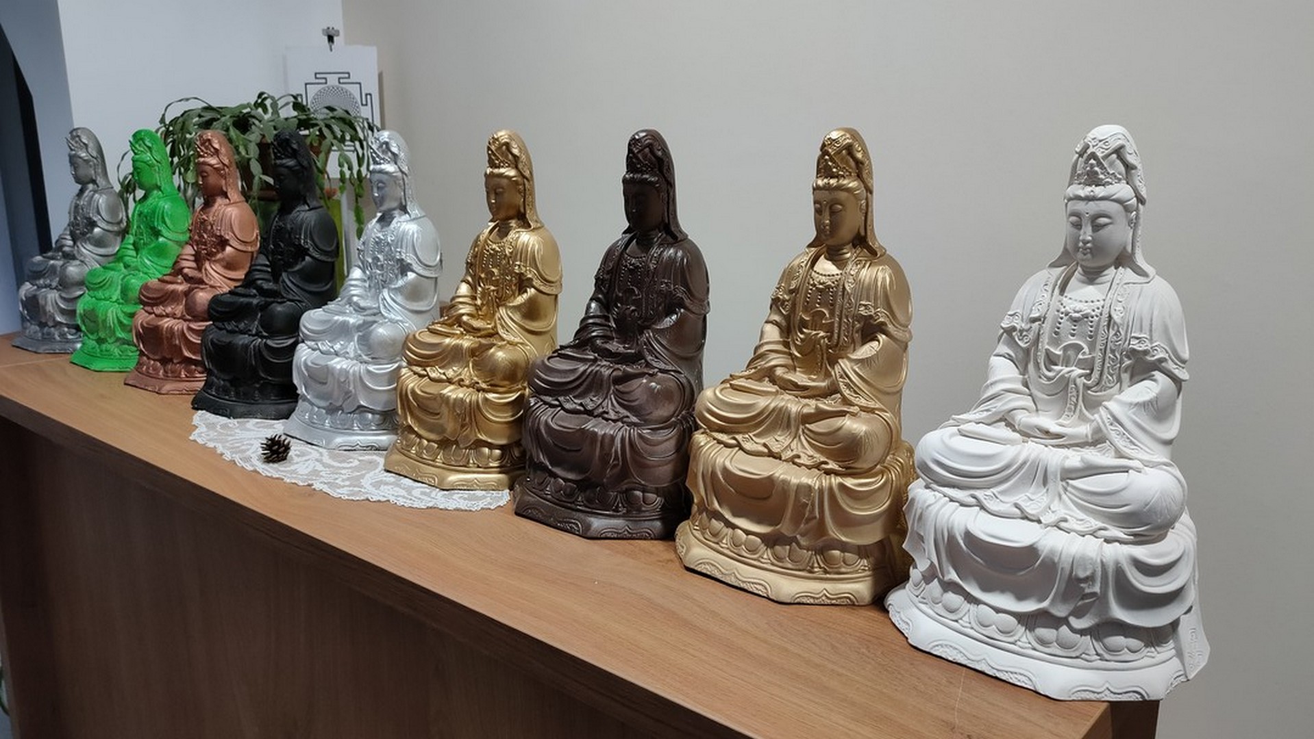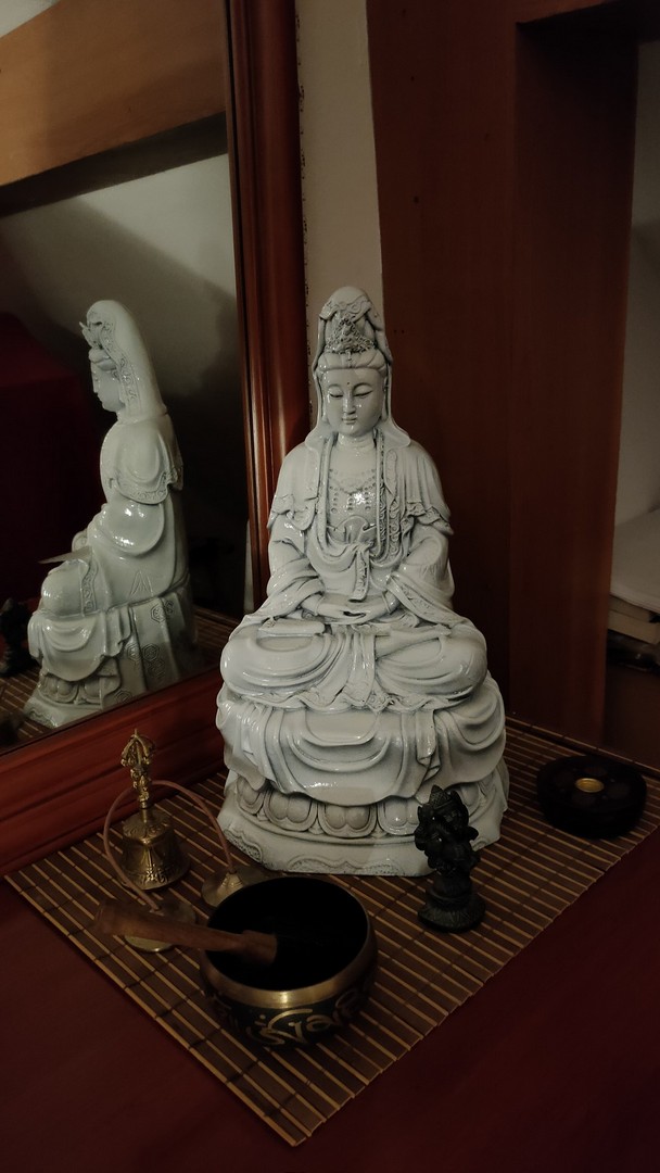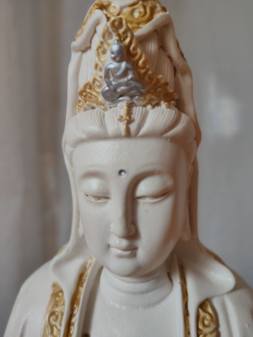 - Statuie reprezentativă a tradiției budiste tibetane. Este cunoscută și sub numele de Guan Yin sau Tara. Reprezintă aspectul divin al compasiunii. Postura de meditație este Padmasana (Postura Lotusului) și degetele de la mâini sunt ținute în Dhyana Mudra (dhyana = meditație, mudra = gest, atitudine).