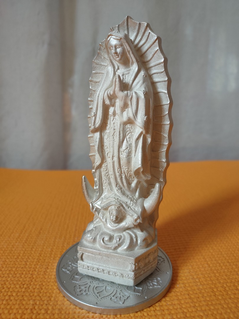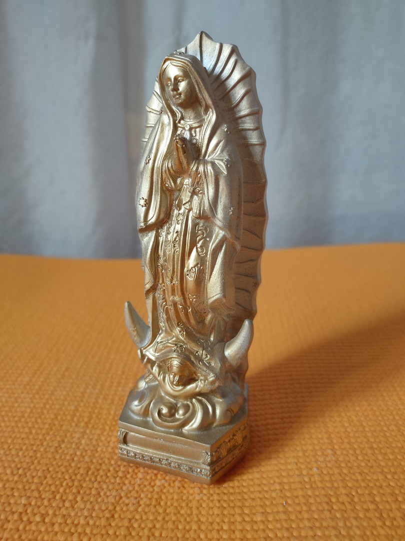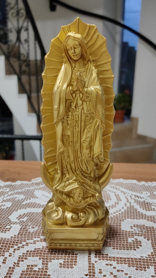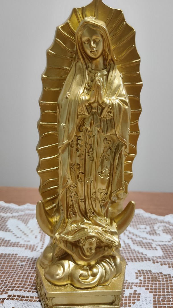- Statuia o reprezintă pe Fecioara Maria care i-a apărut de patru ori, în anul 1531, unui localnic numit Juan Diego din provincia Guadelupe din Mexic cerându-i să ridice o biserică în acel loc. Ulterior a mai apărut odată unchiului său Bernardino. Este cunoscută și sub numele de Fecioara din Guadelupe.