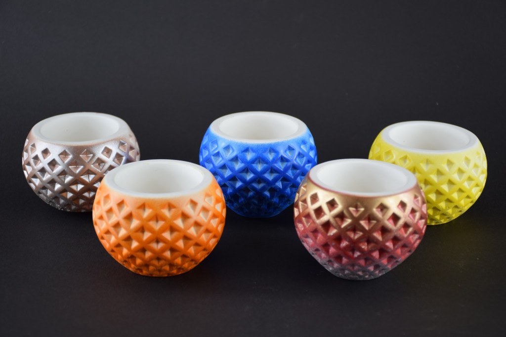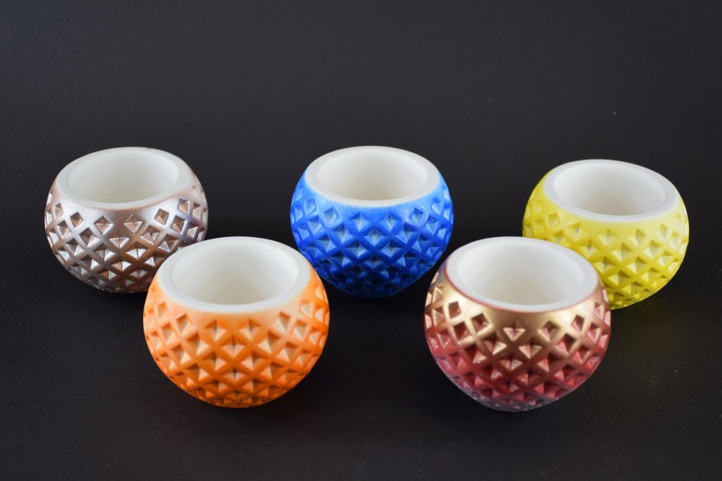 - Este un suport mai mare dar simplu și frumos de lumânare, în formă de bol cu model rombic care conferă eleganță.