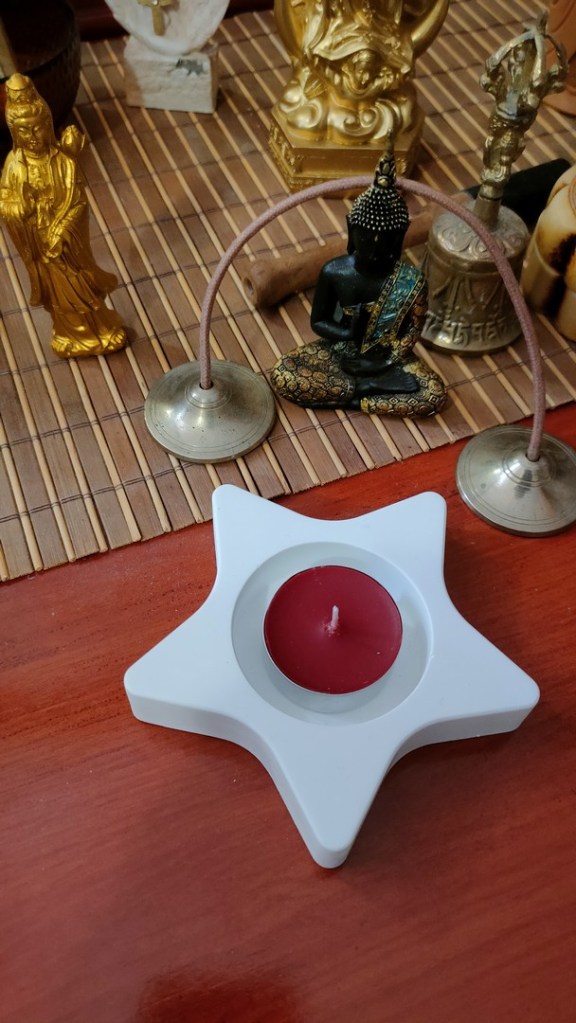 - Este un suport simplu și frumos de lumânare care seamănă privit de sus cu o stea ce are 5 raze.
