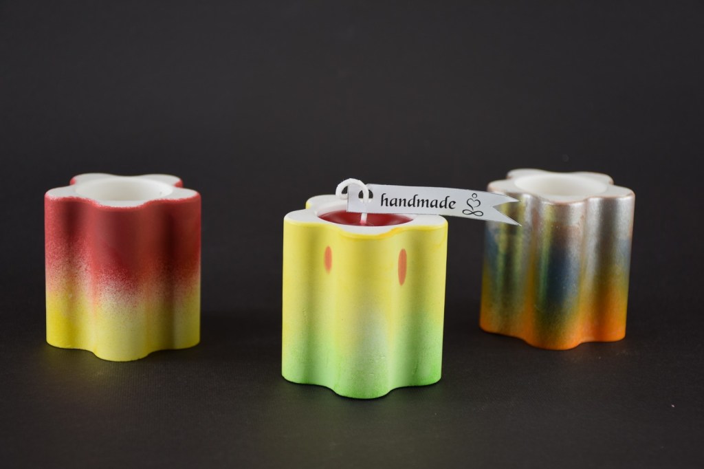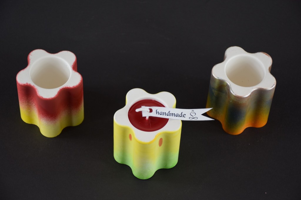 - Este un suport simplu și frumos de lumânare care seamănă privit de sus cu o floare ce are 5 petale.