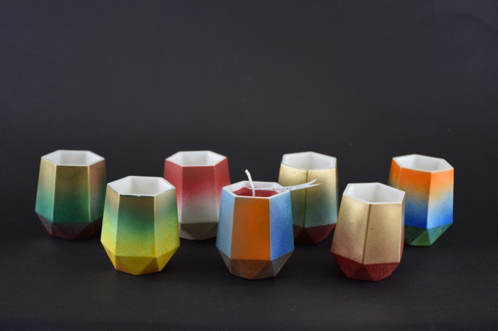 - Este un suport mai înalt dar simplu și frumos de lumânare, în formă de hexagon.