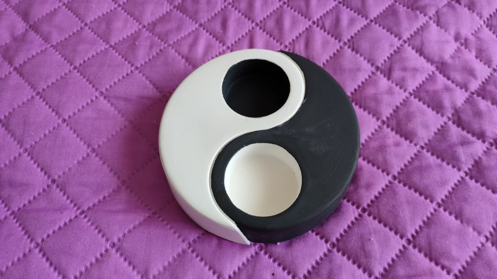 - Este un suport simplu și frumos de lumânare care ilustrează simbolic principiul fundamental al unității – Tao din tradiţia chineză. El reprezintă interacţiunea dintre Yin (principiul pasiv, feminin) şi Yang (principiul activ, masculin). Jumătatea neagră a suportului are în ea o picătură de alb, iar jumătatea albă are o picătură de negru, sugerând faptul că orice aspect poartă în el şi o parte a aspectului polar opus.