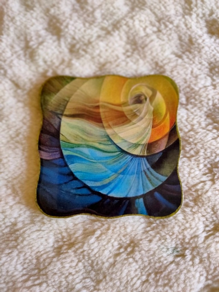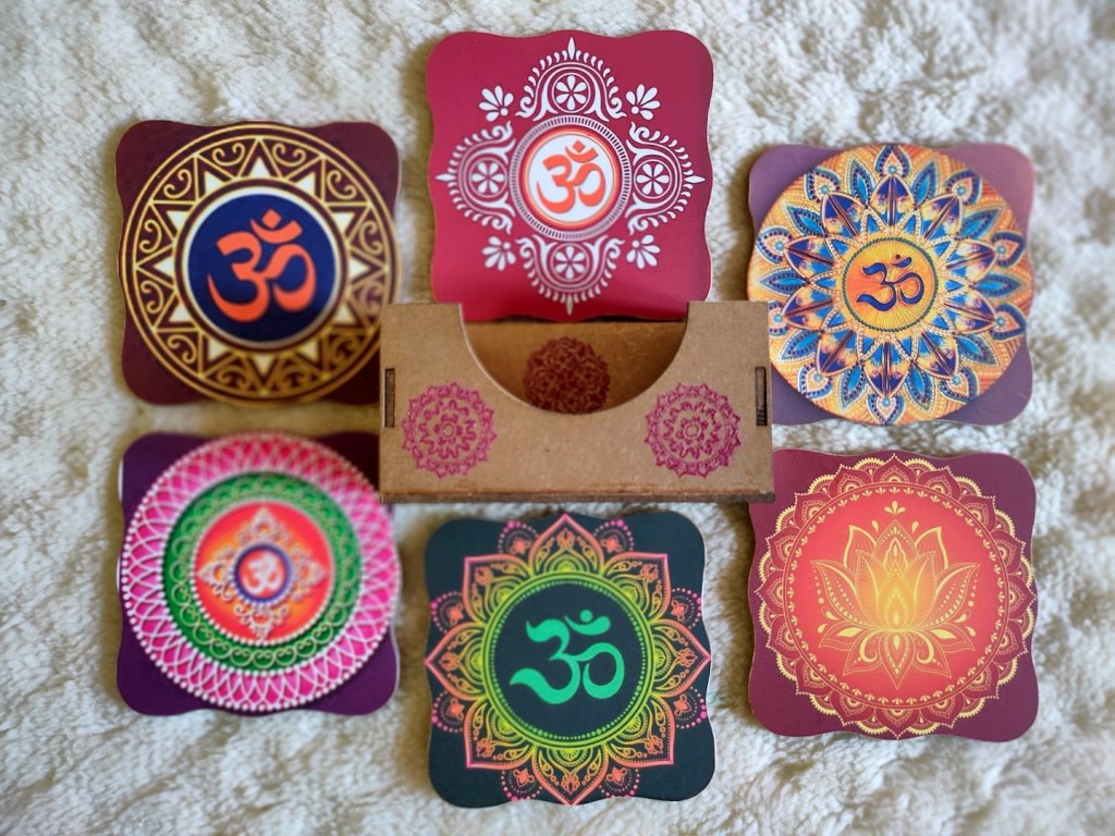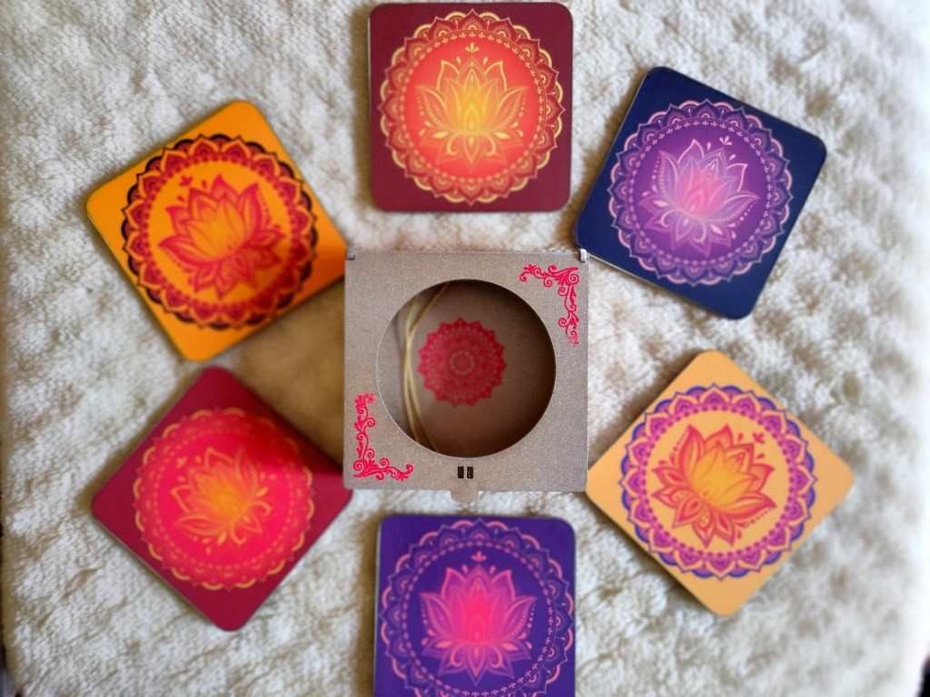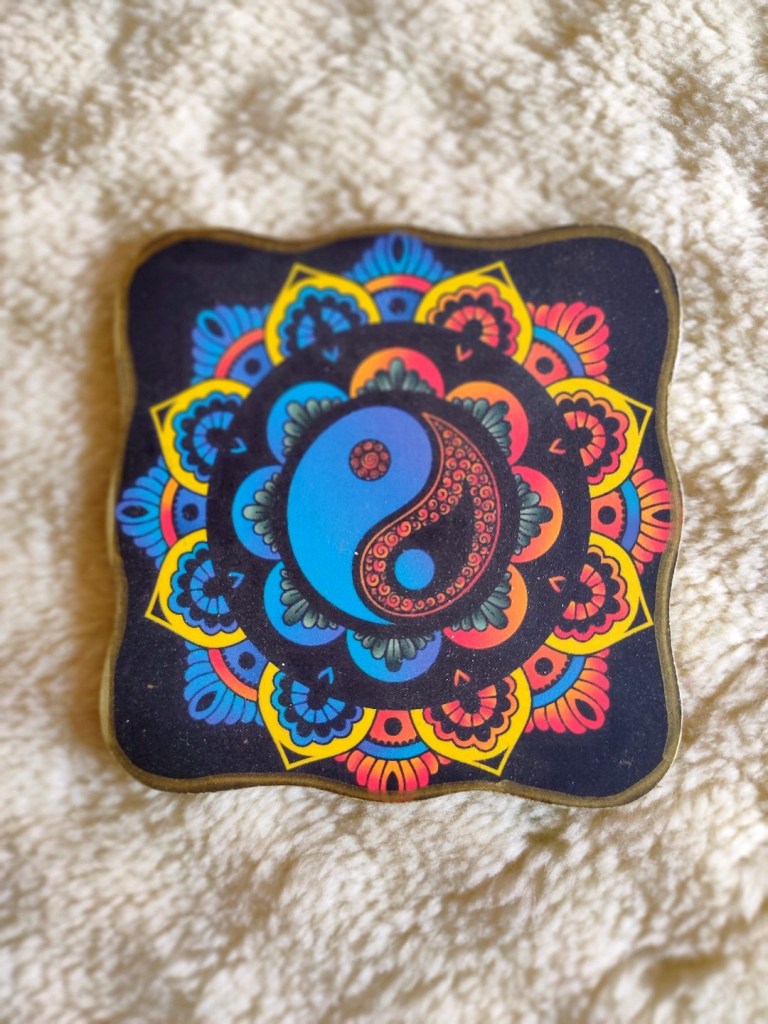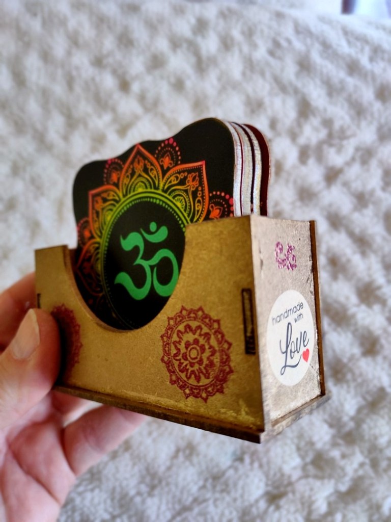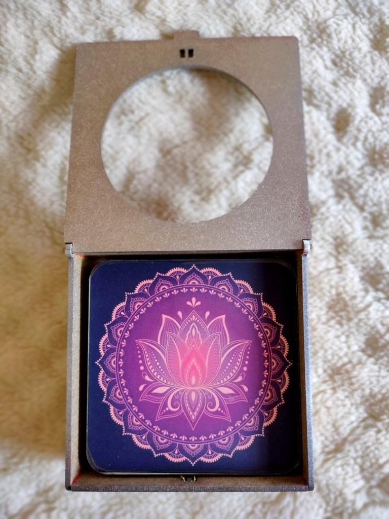 - Pe suporți este imprimat un model mandalic sau alte simboluri din tradițiile spirituale.