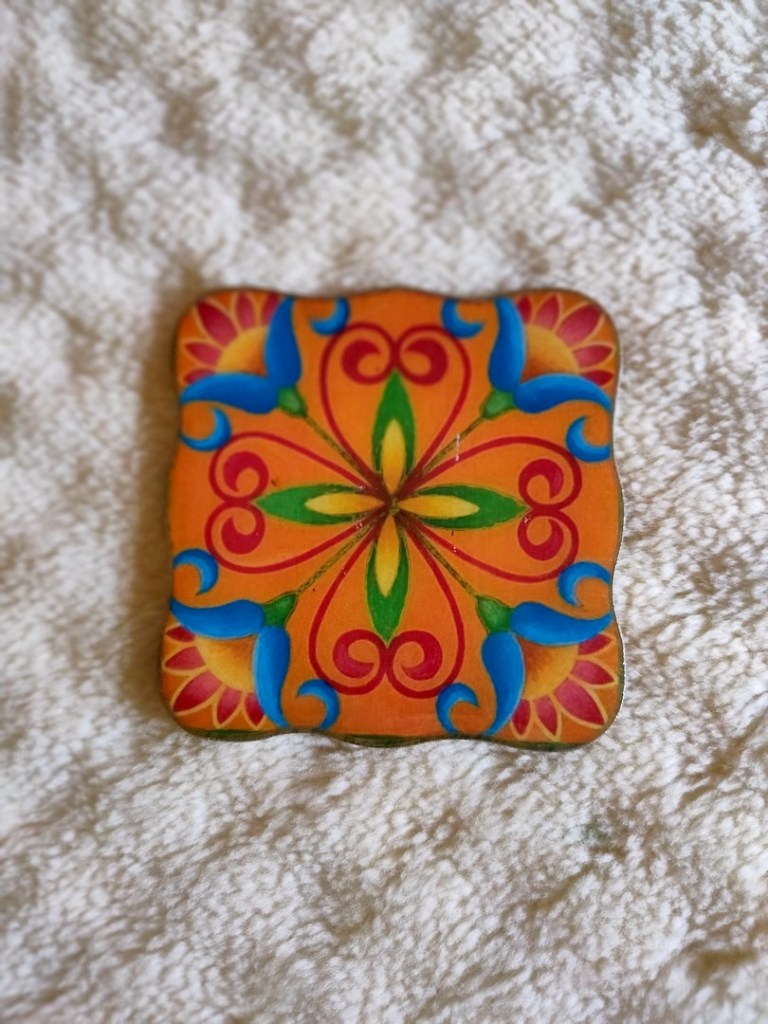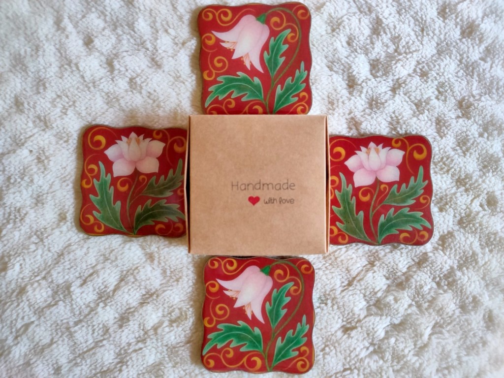 - Acești suporți pătrați sunt realizați din lemn (MDF) de 2 sau 3 mm grosime având mărimi diferite (L = 8 cm, 9 cm sau 10 cm) .