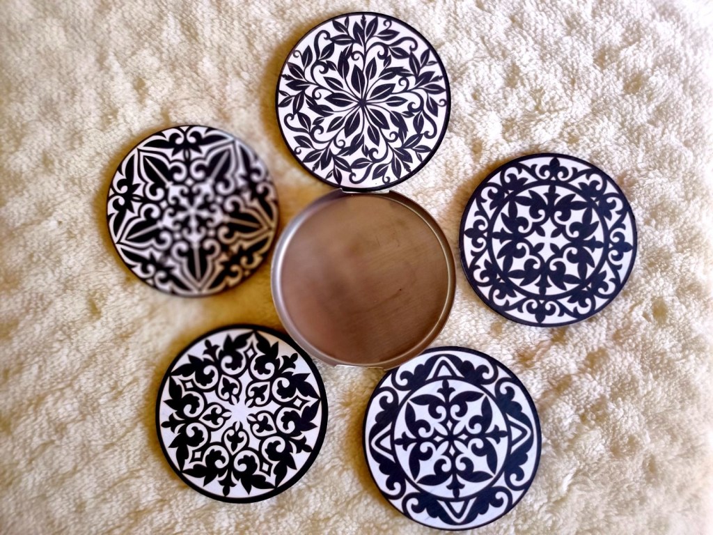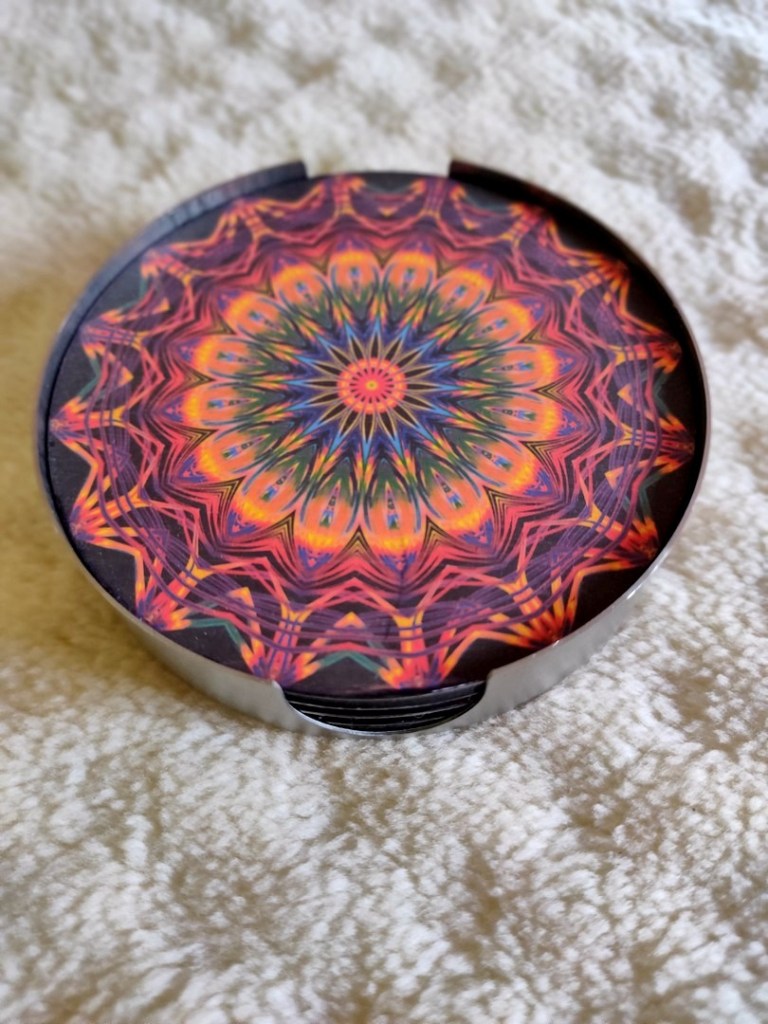 - Pe suporți este imprimat un model mandalic sau alte simboluri din tradițiile spirituale.