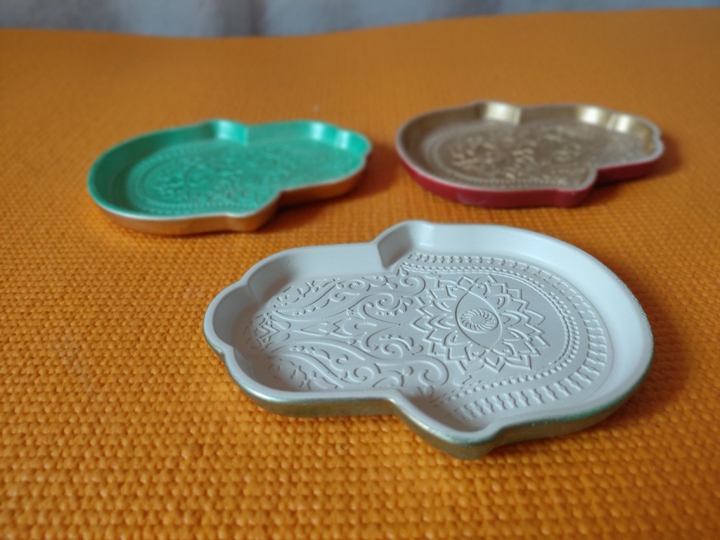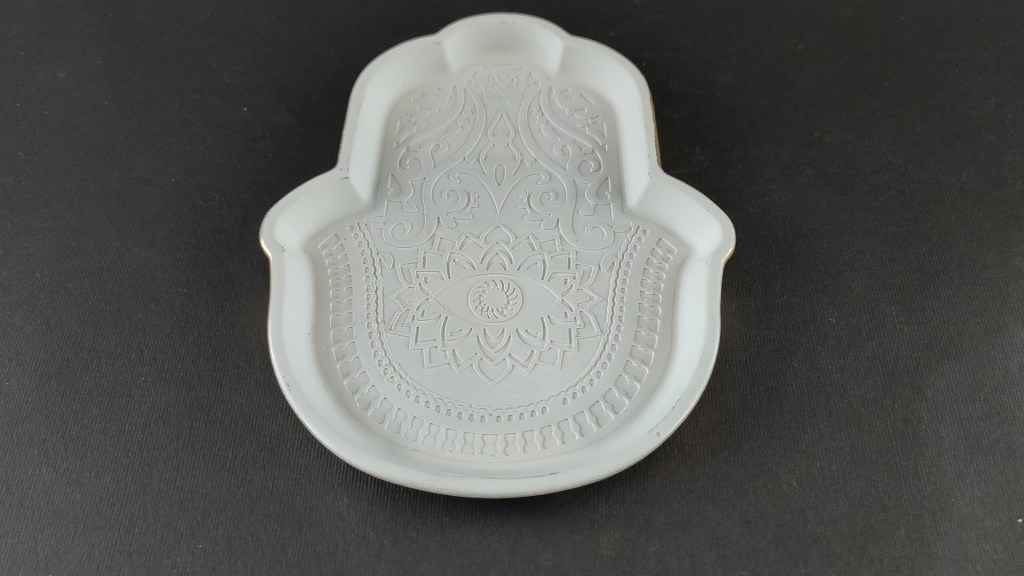 - Este o tăviță simplă în care putem aranja lănțișoarele și brățările dar poate avea multiple întrebuințări: suport de lumânări, cană sau pahar, etc.